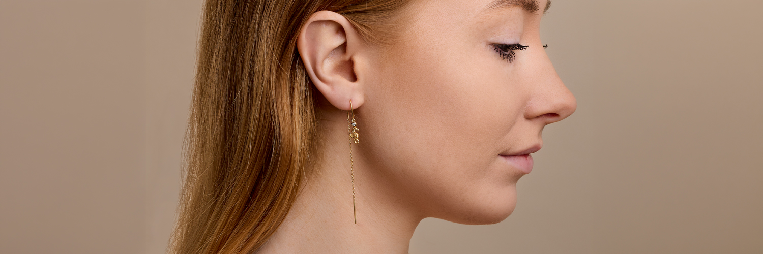 Ocean Collection The Ocean Collection is inspired by the ocean’s small details and vibrant shapes. Playful silhouettes meet a light and elegant expression, giving the jewellery a feminine and modern look. The pieces are crafted from recycled sterling silver and plated with 18 karat gold. Selected designs are adorned with freshwater pearls, adding a natural and exclusive touch. The collection includes bracelets, seahorse ear studs and starfish earrings – both with chains and without. The designs can be worn alone for a simple look or combined for a more personal styling. |